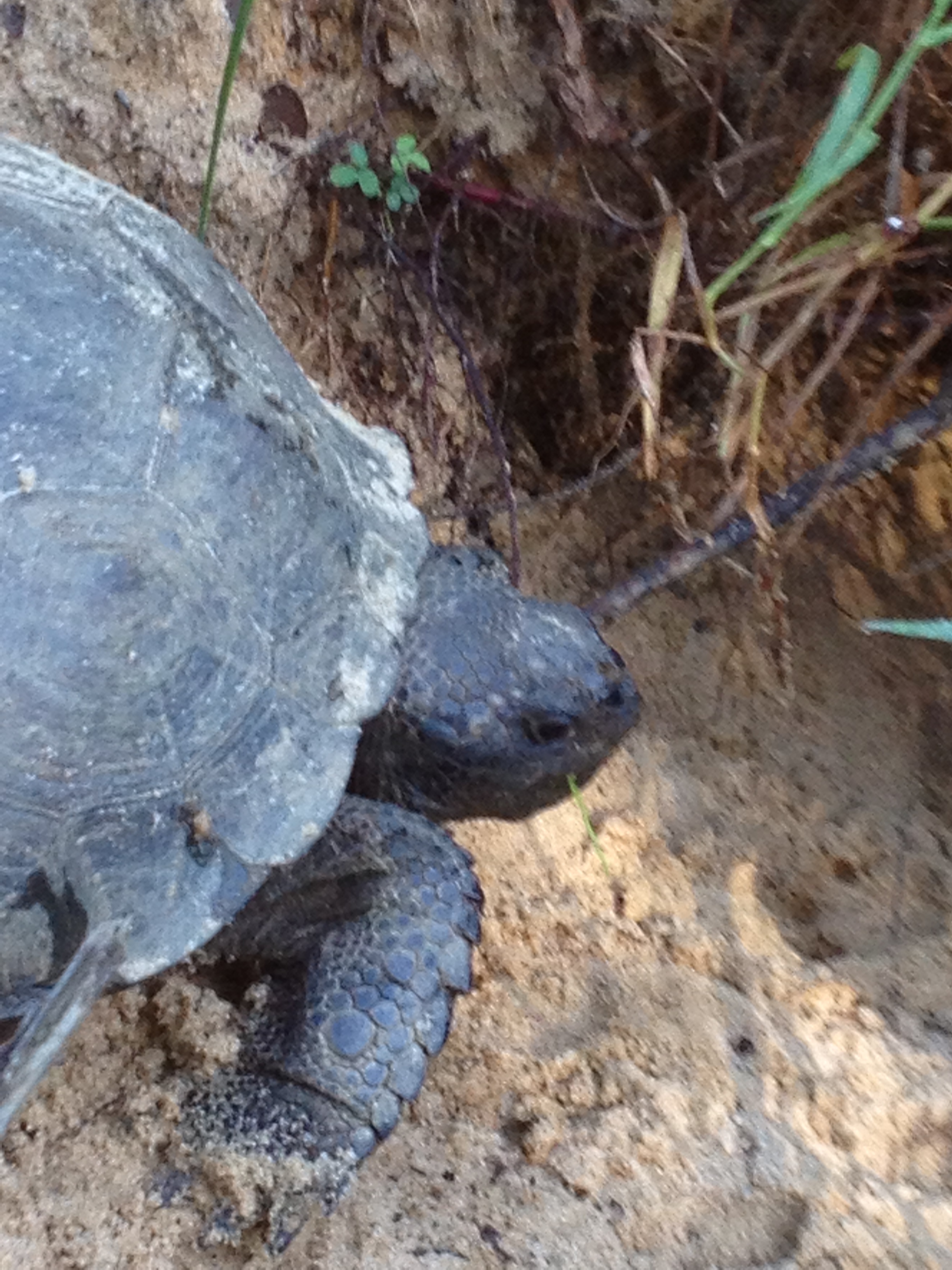 With the exception of the sandhill cranes, the birds are usually safe above the traffic on wires or trees. But I worry about our gopher tortoises. Seemingly unaware of the dangers they face, they slowly make their way across the road. It’s a death wish in high traffic areas. Usually you can see them far enough away to slow down in time. They resemble a flattened World War 2 German army helmet moving at glacial speed. But I cringe when I see drivers too preoccupied to notice them. Many tortoises are struck and killed.